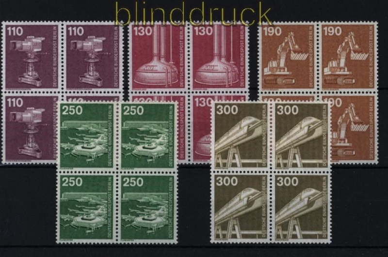 Berlin Mi # 668/72 postfrische 4er-Blöcke Indistrie & Technik (III) komplette Ausgabe 4er-Blöcke postfrisch Erhaltung siehe Scan