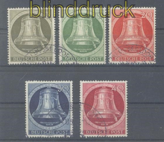 Berlin Mi # 82/86 gestempelt Glockensatz Klöppel rechts Einweihung der Freiheitsglocke (II) komplette Ausgabe gestempelt Erhaltung siehe Scan