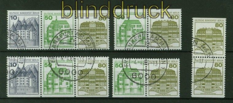 Berlin Zusammendrucke Burgen und Schlösser aus MH 13 komplett gestempelt Zusammendrucke Burgen und Schlösser komplette Zusammendrucke aus Markenheftchen 13 gestempelt Erhaltung siehe Scan