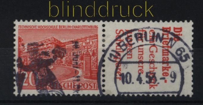 Berlin Zusammendrucke Mi # W 17 gestempelt 20 Pfg. Berliner Bauten mit Reklamefeld: Die Briefmarke - ein Geschenk für unsere jungen Schulsparer waagerechter Zusammendruck gestempelt Erhaltung siehe Scan