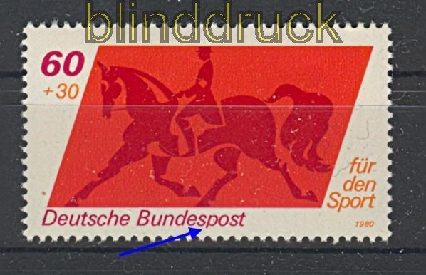 Bundesrepublik Mi # 1047 I postfrisch Plattenfehler Kurzes P 60 + 30 Pfg. Sporthilfe 1980 mit Plattenfehler I: kurzes p von Bundespost Erhaltung siehe Scan
