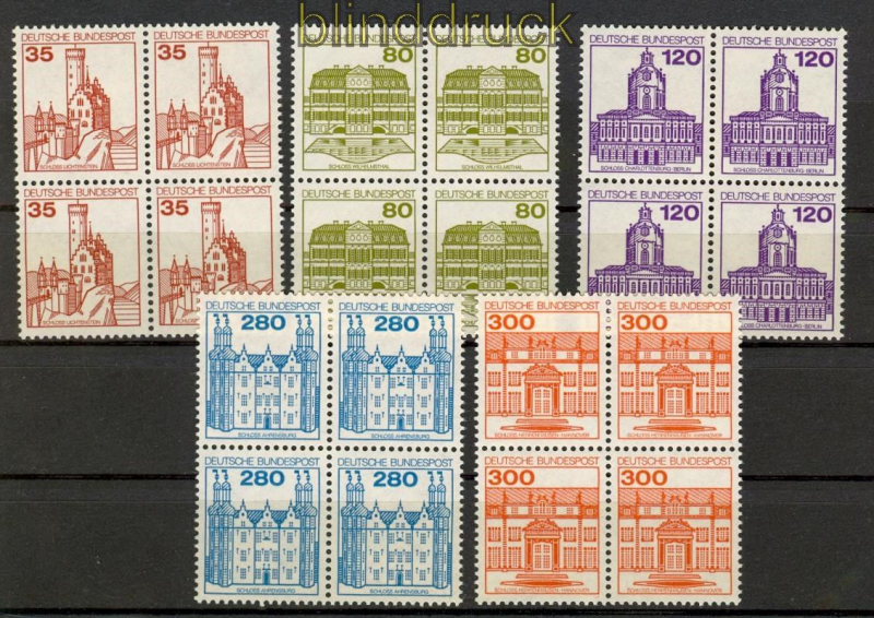 Bundesrepublik Mi # 1139/43 postfrisch Burgen & Schlösser als 4er-Blöcke Burgen und Schlösser (V) komplette Ausgabe postfrische 4er-Blöcke Erhaltung siehe Scan