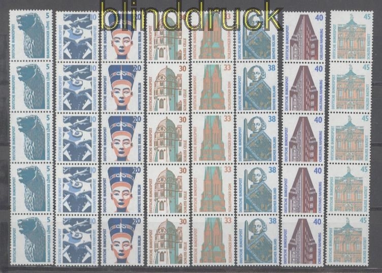 Bundesrepublik Mi # 1339/1462 postfrisch Sehenswürdigkeiten 20 verschiedene 5er-Streifen Sehenswürdigkeiten 20 verschiedene postfrische 5er-Streifen postfrisch vier RE 5 + 1 Gratisbeigabe Erhaltung siehe Scan