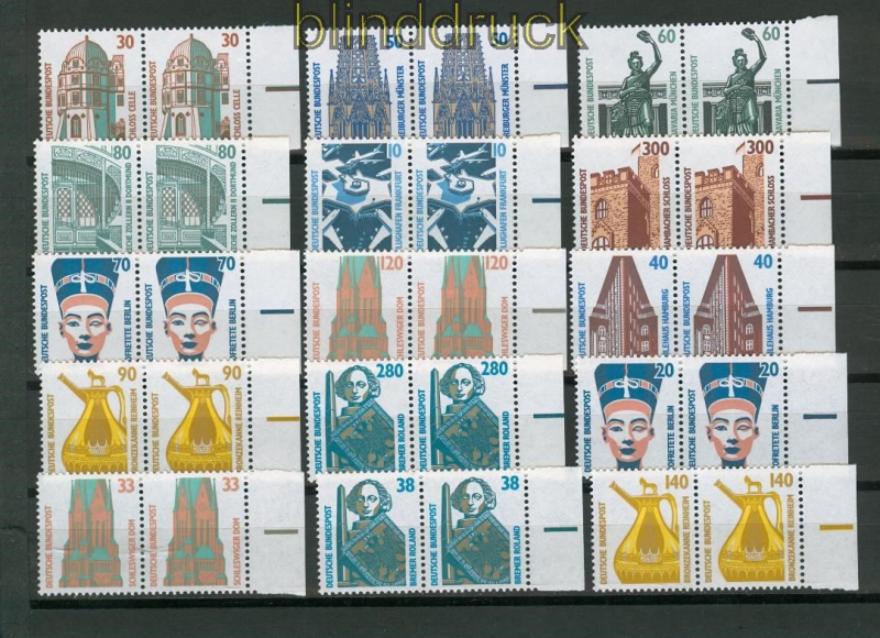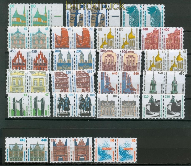 Bundesrepublik Mi # 1339 bis Mi # 2009 SWK waagerechte Paare postfrisch komplett Sehenswürdigkeiten von Mi # 1339 bis zur Mi # 2009 komplett waagerechte Paare postfrisch Erhaltung siehe Scan