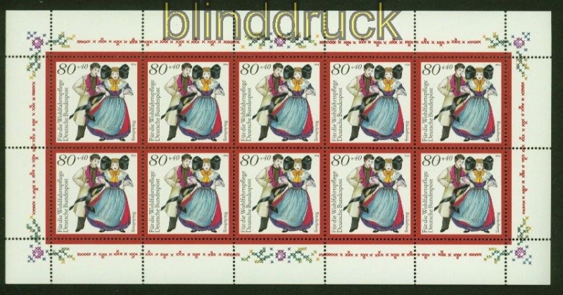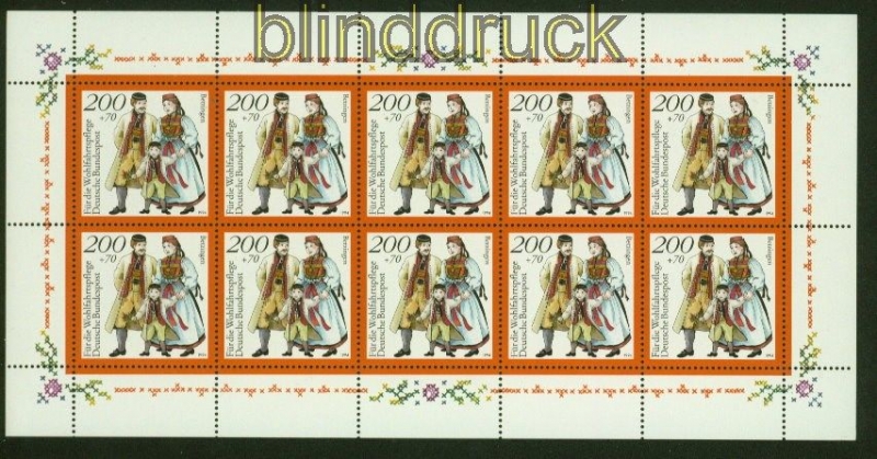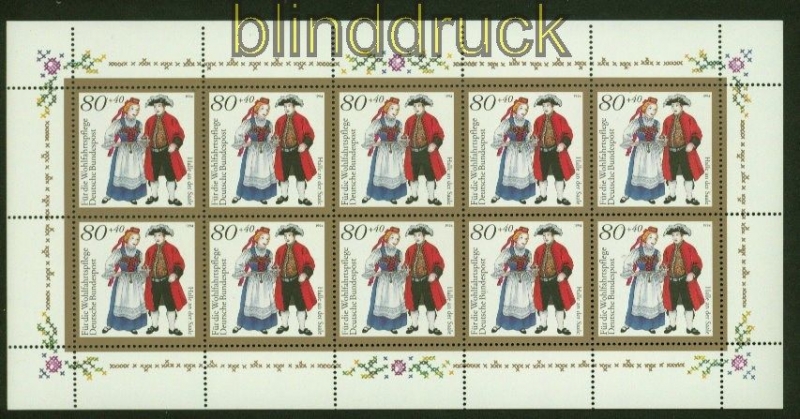 Bundesrepublik Mi # 1757/61 kompletter postfrischer Bogensatz Wohlfahrt 1994 Wohlfahrt 1994: Deutsche Trachten (II) kompletter Bogensatz Katalogwert 120,00 Euro einwandfrei postfrisch, nicht gefaltet Erhaltung siehe Scan