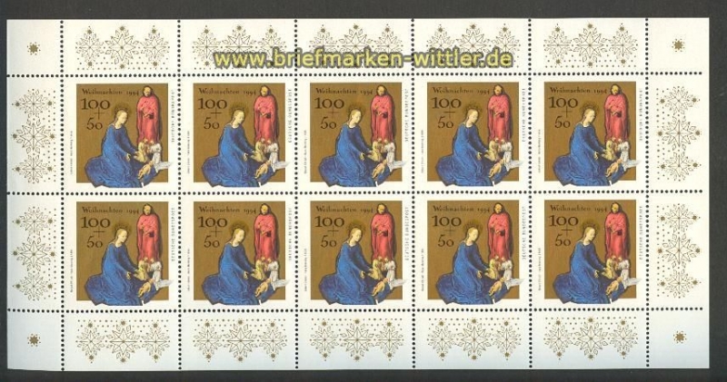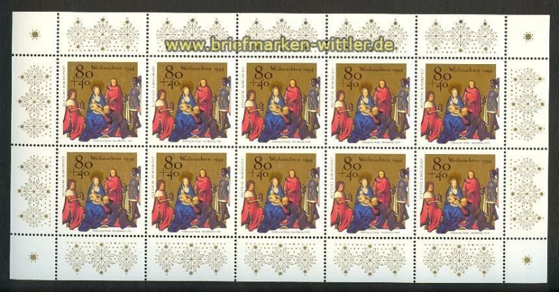Bund Mi # 1770/71 postfrisch Weihnachten 1994 kompletter10er-Bogensatz (1770pfr)