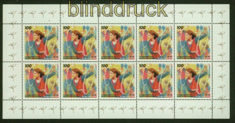 Bundesrepublik Mi # 1777/80 kompletter postfrischer Bogensatz Sporthillfe 1995 kompletter Bogensatz Katalogwert 80,00 Euro einwandfrei postfrisch, nicht gefaltet Erhaltung siehe Scan