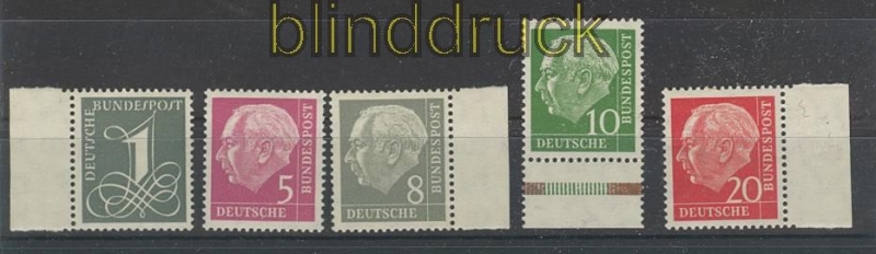 Bundesrepublik Mi # 179 Y/285 Y Heuss liegendes Wasserzeichen postfrisch Heuss I Dauerserie 5 Werte mit liegendem Wasserzeichen mit Mi # 285 Y komplette Ausgabe postfrisch Erhaltung siehe Scan