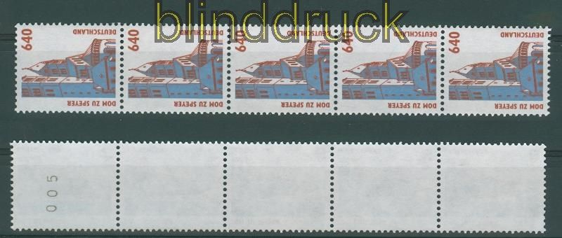 Bundesrepublik Mi # 1811 R SWK 640 Pfg. postfrischer 5er-Streifen 640 Pfg. Sehenswürdigkeiten Rollenmarke 5er-Streifen mit rückseitiger Nummer postfrisch Erhaltung siehe Scan