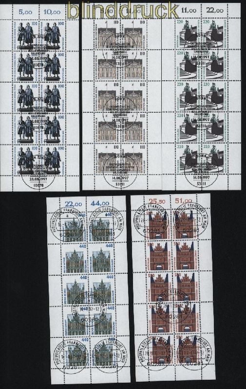 Bundesrepublik Mi # 1934/38 A kompletter 10er-Bogen gestempelt Sehenswürdigkeiten SWK komplette Ausgabe komplette 10er-Bögen gestempelt einwandfreie Erhaltung siehe Scan