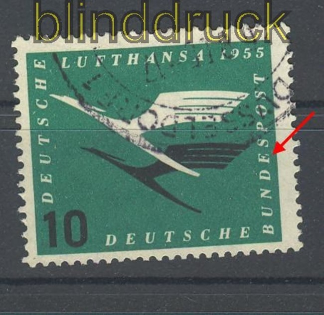 Bundesrepublik Mi # 206 I gestempelt 10 Pfg. Lufthansa Plattenfehler mit dem seltenen Plattenfehler I: unterer Balken des E gebrochen gestempelt gut gezähnt Erhaltung siehe Scan