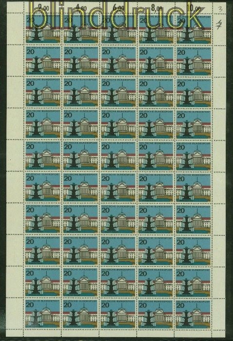 Bundesrepublik Mi # 420 im kompletten Bogen mit 420 I und 420 II postfrisch Hauptstädte der Länder der Bundesrepublik Deutschland: Wiesbaden im kompletten Bogen mit Plattenfehler I und II postfrisch ungefaltet Erhaltung siehe Scan