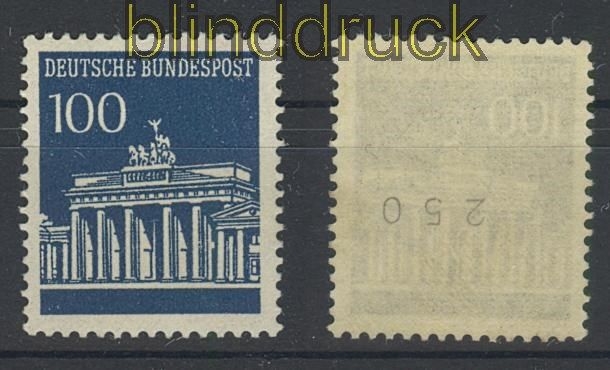 Bundesrepublik Mi # 510 R postfrisch 100 Pfg. Brandenburg mit Nummer 100 Pfennig Brandenburger Tor postfrisch mit rückseitiger Rollennummer 250 Erhaltung siehe Scan