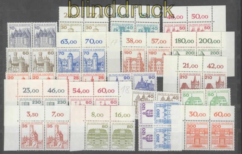 Bundesrepublik Mi # 913/1143 Burgen & Schlösser komplett waagerechte Paare postfrisch komplette Ausgabe Burgen & Schlösser als waagerechte Paare einwandfrei postfrisch Erhaltung siehe Scan