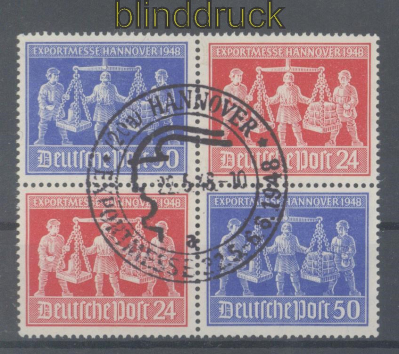 alliierte Besetzung Gemeinschaftsausgaben Mi # VZd 1 gestempelt mit Messe-Sonderstempel Zusammendruck 4er-Block Hannover Messe mit Messe-Sonderstempel Erhaltung siehe Scan