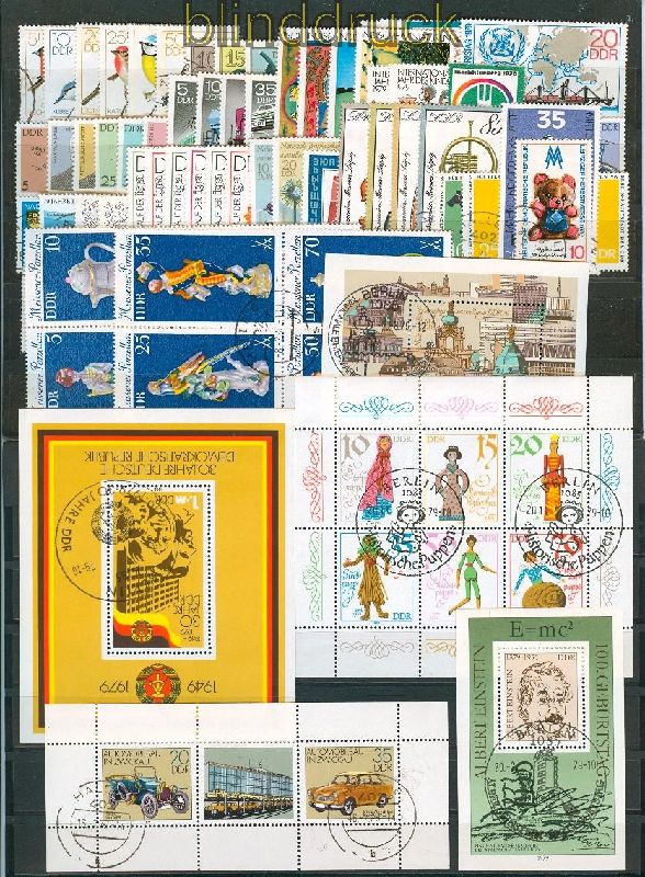 Deutsche Demokratische Republik DDR kompletter gestempelter Jahrgang 1979 in den Hauptnummern komplett Marken mit Tagesstempel Blöcke und Kleinbögen teilweise mit Sonderstempel enstsprechend berechnet keine Bogenabstempelungen!!!! sauber rundgestempelt aus dem Bedarf Erhaltung siehe Scan