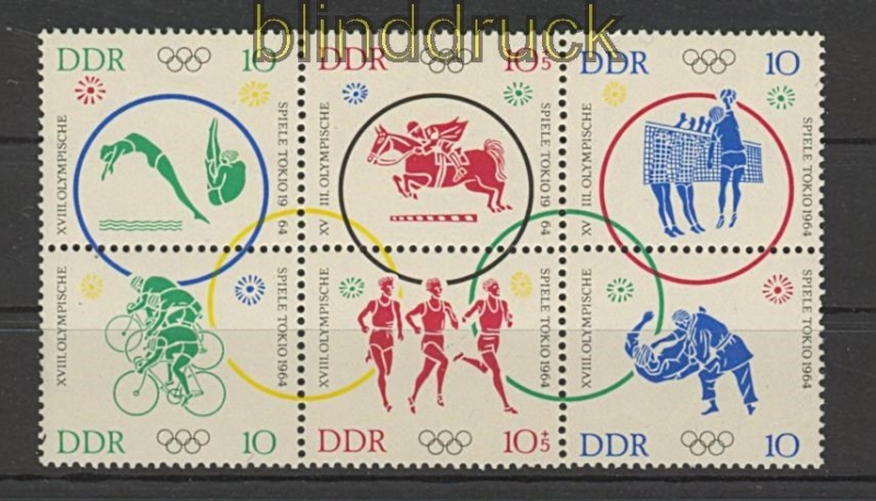 Deutsche Demokratische Republik DDR Mi # 1039/44 postfrischer 6er-Block Olympiade Olympische Sommerspiele, Tokio (II) postfrisch Erhaltung siehe Scan