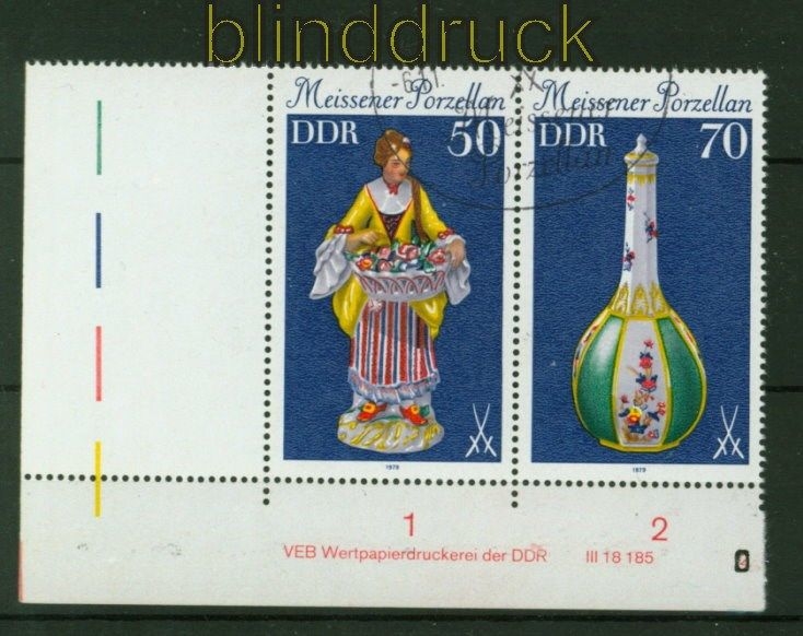 Deutsche Demokratische Republik Mi # 2464/71 WZd 435 mit Druckvermerk 2" Sonderstempel Meissener Porzellan (I) waagerechter Zusammendruck mit Druckvermerk "2" Sonderstempel Erhaltung siehe Scan