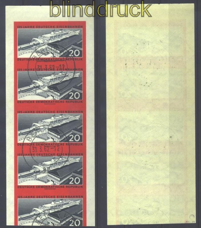 Deutsche Demokratische Republik Mi # 805 B gestempelter 5er-Streifen geprüft Paul BPP 20 Pfennig Eisenbahnfähre Sassnitz senkrechter 5er-Streifen Gefälligkeitsstmepel entsprechend geprüft Paul BPP Erhaltung siehe Scan