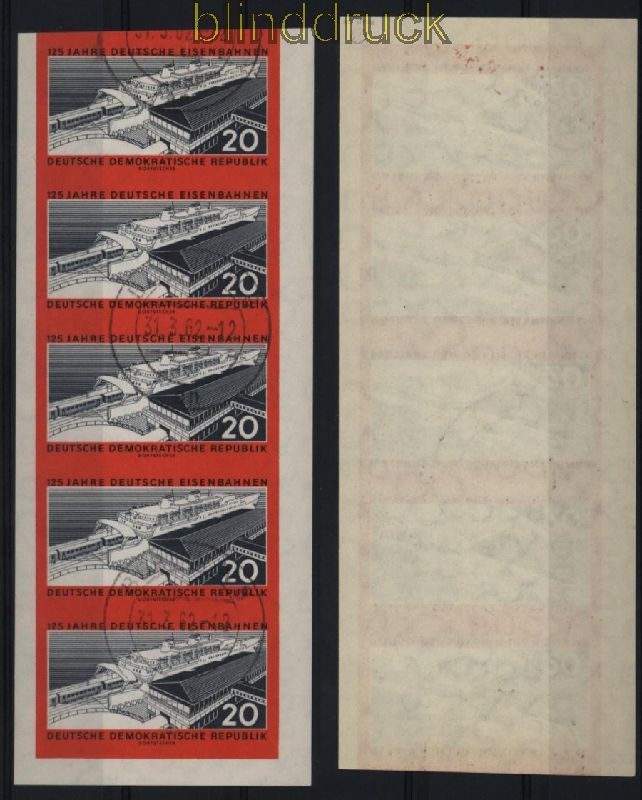 Deutsche Demokratische Republik Mi # 805 B gestempelter 5er-Streifen geprüft Paul BPP 20 Pfennig Eisenbahnfähre Sassnitz senkrechter 5er-Streifen Gefälligkeitsstmepel entsprechend geprüft Paul BPP Erhaltung siehe Scan