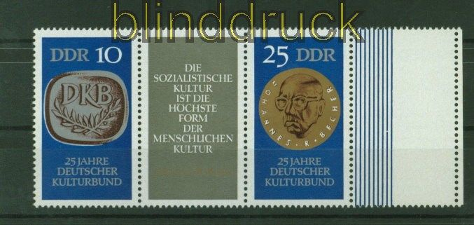 Deutsche Demokratische Republik Mi # 1592/93 Zusammendrucke WZd 230 L Leerfeld postfrisch 25 Jahre Deutscher Kulturbund (DKB) Zusammendruck 10 und Zf und 25 Pfg. mit rechts anhängendem Leerfeld postfrisch einwandfreie Erhaltung siehe Scan