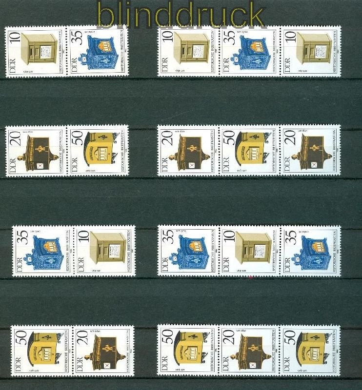 Deutsche Demokratische Republik Mi # 2924/27 Zusammendrucke WZd 617 - SZd 287 postfrisch Historische Briefkästen komplette Zusammendruck-Garnitur postfrisch einwandfreie Erhaltung siehe Scan