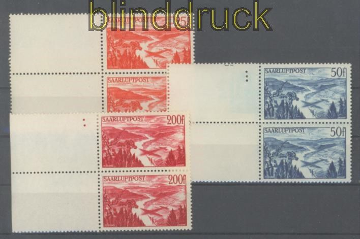 Saarland Mi # 252/54 postfrische senkrechte Paare Flugpostmarken Wiederaufbau Flugpostmarken senkrechte Paare vom linken Seitenrand Mi # 252 und 253 mit Leerfeld postfrisch Erhaltung siehe Scan