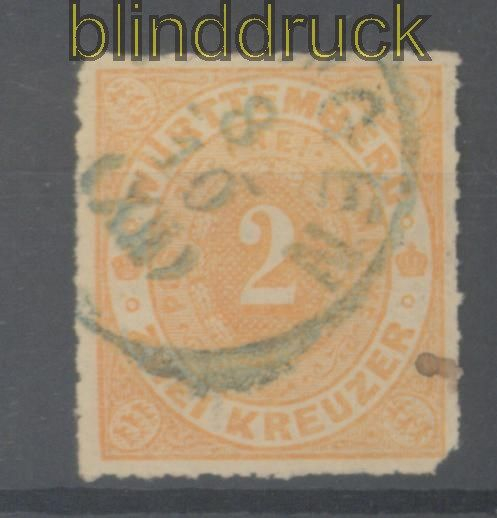 Altdeutschland Württemberg Mi # 37 gestempelt 2 Kreuzer zwei Kreuzer orange durchstochen gestempelt unten rechts kleiner Eckfehler Erhaltung siehe Scan