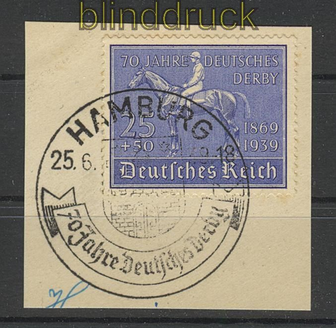 deutsches Reich Mi # 698 Blaue Band gestempelt auf Briefstück25 + 50 Pfg. Blaue Band 1939mit Sonderstempel entwertet auf BriefstückErhaltung siehe Scan