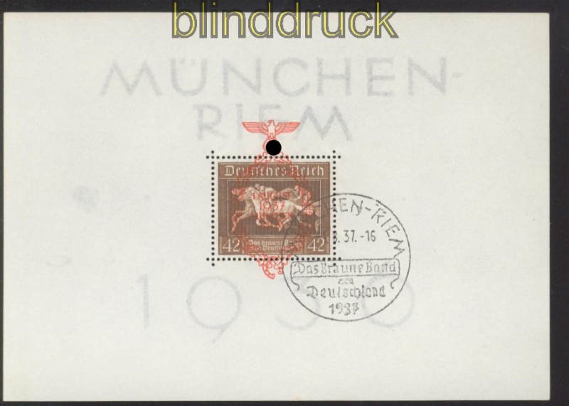 Deutsches Reich Mi # Block 10 Braune Band mit Sonderstempel Blockausgabe Galopprennen das Braune Band von Deutschland in München-Riem Büttenpapier Sonderstempel Erhaltung siehe Scan