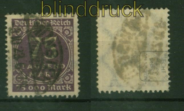Deutsches Reich Mi # 276 gestempelt geprüft Infla Berlin 75 Tsd Mark Ziffer im Kreis gestempelt geprüft Infla Berlin Erhaltung siehe Scan