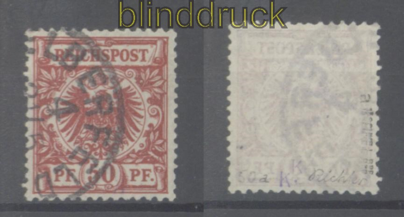Deutsches Reich Mi # 50 a gestempelt geprüft Jäschke-L. BPP 50 Pfennig Krone/Adler bräunlichrot gestempelt etwas höher geoprüft Jäschke-L. BPP Erhaltung siehe Scan