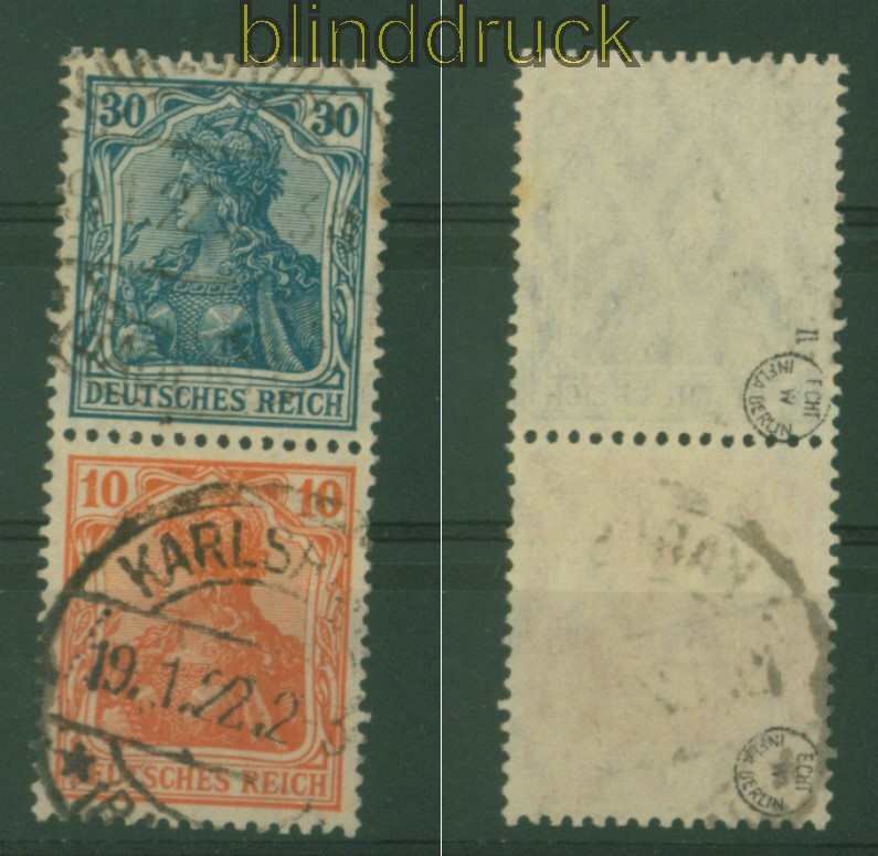Deutsches Reich Zusammendruck Mi # S 17 gestempelt geprüft Infla Berlin senkrechter Germania-Zusammendruck 30 Pfg. blau und 10 Pfg. orange gestempelt geprüft Infla Berlin Erhaltung siehe Scan