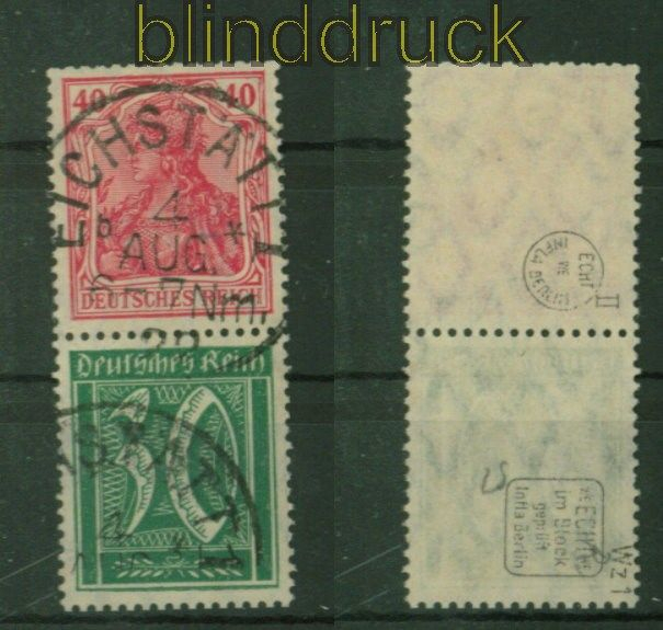 Deutsches Reich Zusammendrucke Mi # S 29 gestempelt geprüft Infla Berlin 40 Pfg. Germania und 30 Pfg. Ziffern senkrechter Zusammendruck gestempelt geprüft Infla Berlin Erhaltung siehe Scan