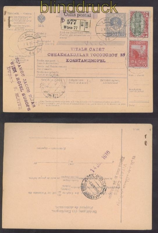 Österreich Mi # 151 z und 154 z auf Auslands-Paketkarte nach Constantinopel 1916 (44748)
