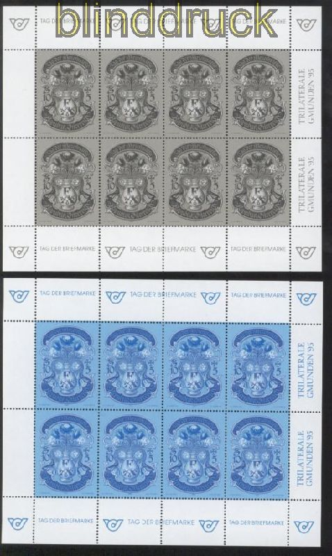 Österreich Mi # 2158 postfrischer Schwarzdruckbogen und Blaudruckbogen Tag der Briefmarke 1995 kompletter Schwarzdruckbogen und Blaudruckbogen postfrisch Erhaltung siehe Scan
