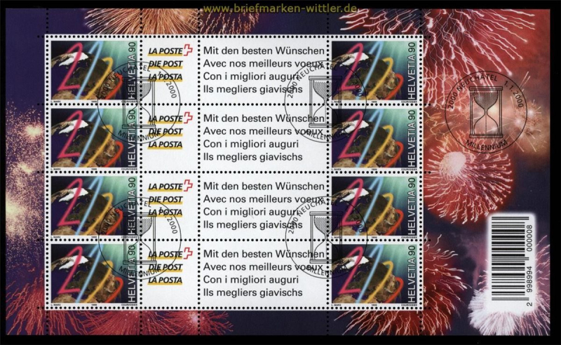Schweiz Mi # 1706 Kleinbogen gestempelt Kleinbogenausgabe Jahrtausendwende mit Sonderstempel Erhaltung siehe Scan
