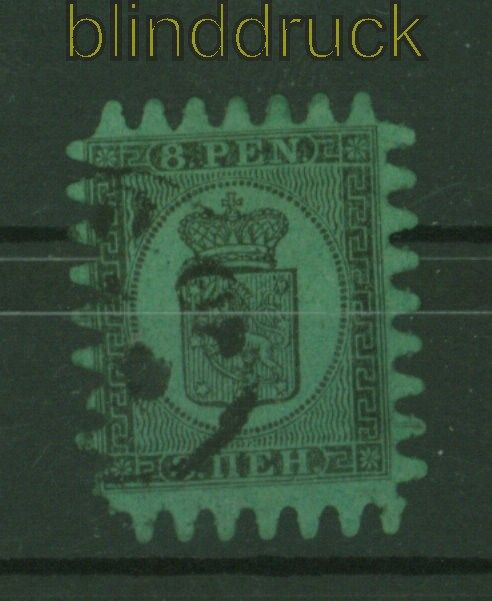 Finnland Mi # 6 C Wappen gestempelt 8 Pen schwarz auf grünen Papier gestempelt Erhaltung siehe Scan