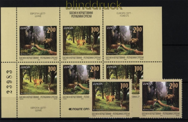 Bosnien-Herzegowina Serbische Republik Mi # 525/26 A und H.-Bl. 14 postfrisch Europa-CEPT Ausgabe 2011: Für den Wald postfrisch Erhaltung siehe Scan