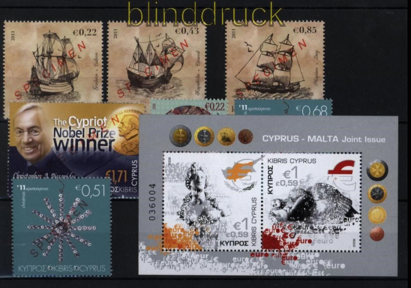 Zypern postfrische Neuheiten mit Aufdruck SPECIMEN aus 2011 und 2012 (31222)