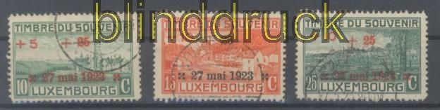 Luxemburg Mi # 144/46 gestempelt Einweihung eines Kriegerdenkmals Einweihung eines Kriegerdenkmals durch den belgischen Kronprinzen Leopold mit Aufdruck komplette Ausgabe gestempelt Erhaltung siehe Scan