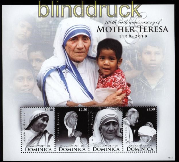 Domenica Mi # 4070/73 Mutter Teresa postfrisch 100. Geburtstag von Mutter Teresa Kleinbogen postfrisch Erhaltung siehe Scan