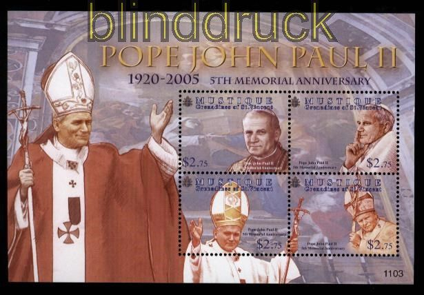 St. Vincent Mustique Mi # 161/64 5. Todestag von Johannes Paul II postfrisch 5. Todestag von Johannes Paul II postfrischer Kleinbogen ABO-Qualität Erhaltung siehe Scan