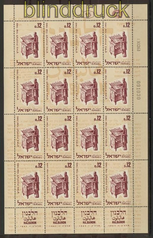 Israel Mi # 286 kompletter postfrischer Bogen 100 Jahre Zeitung „Halbanon“ Erhaltung siehe Scan