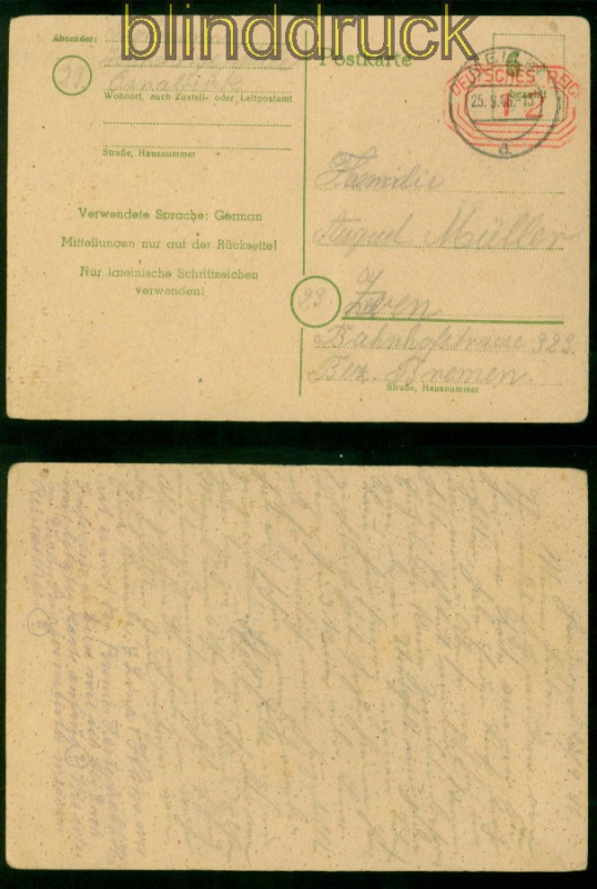 Britische Zone Behelfsausgabe GSK PB01 gestempelt Melle 25.9.1946 Ganzsachenkarte Mi # PB01 Behelfsausgabe der Britischen Zone Ganzsachenkarte bedarfsmäßig gelaufen aus Melle 25.9.1946 nach Zeven senkrecht mittig zwei Büge Erhaltung siehe Scan