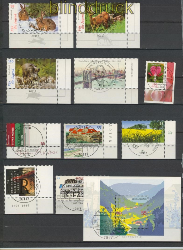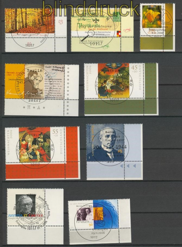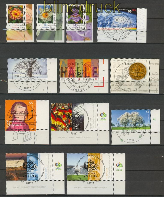 Bundesrepublik 2006 gestempelter Jahrgang mit Sonderstempel SSt. ohne selbstklebende Marken alle Marken vom Eckrand unten rechts stammt aus einem Deutschland plus ABO daher sind keine selbstklebenden Marken dabei einwandfreie Erhaltung siehe Scan