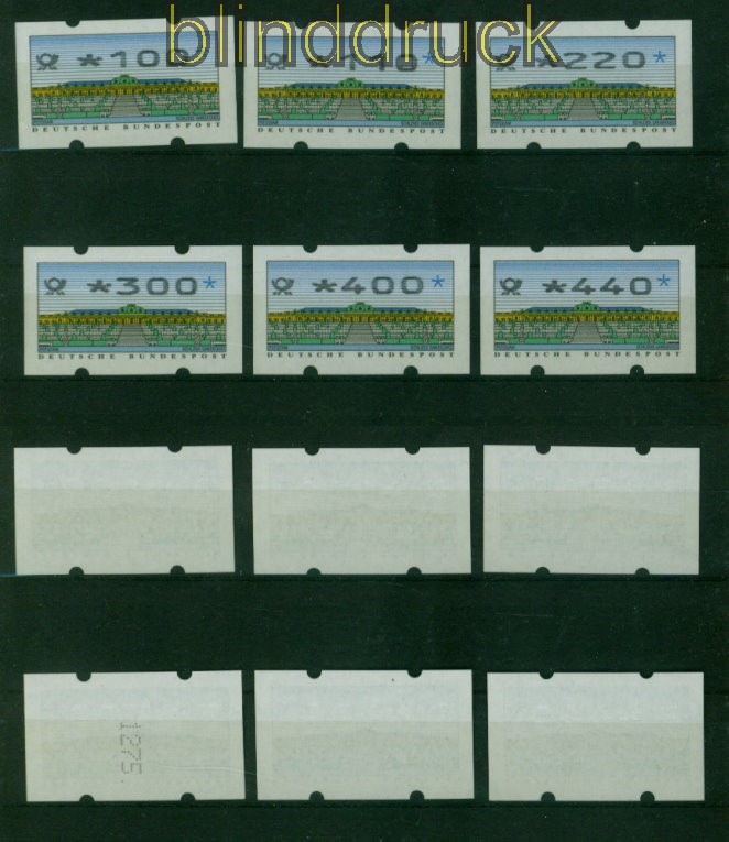 Bundesrepublik ATM 1993 Mi # 2 Type 2.3 Versandstellensatz 2 postfrisch teilweise mit Nummer Automatenmarken Ausgabe 1993 Type 2.3 Versandstellensatz 2 postfrisch 300 Pfg mit rückseitiger Nummer Erhaltung siehe Scan