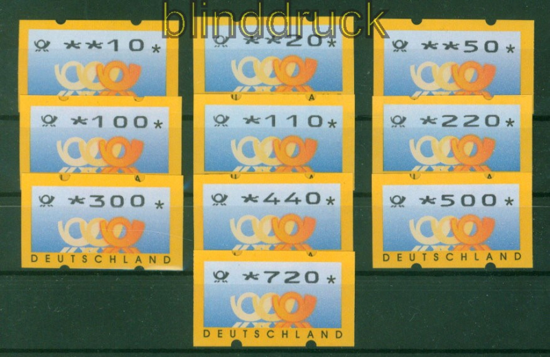 Bundesrepublik ATM 1999 Mi # 3.3 Versandstellensatz 2 postfrisch komplett mit Nummer Automatenmarken 1999 komplette Ausgabe Versandstellensatz 2 alle ATM mit rückseitiger Nummer postfrisch Erhaltung siehe Scan