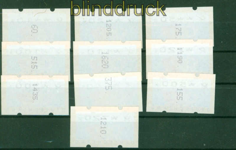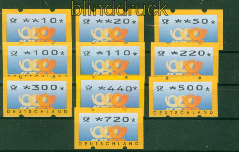 Bundesrepublik ATM 1999 Mi # 3.3 Versandstellensatz 2 postfrisch komplett mit Nummer Automatenmarken 1999 komplette Ausgabe Versandstellensatz 2 alle ATM mit rückseitiger Nummer postfrisch Erhaltung siehe Scan
