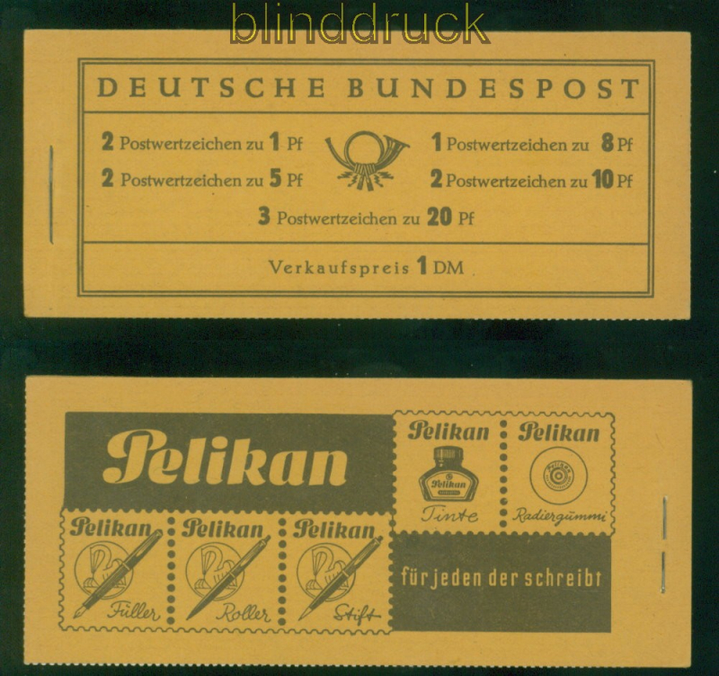 Bundesrepublik Markenheftchen Mi # 4 X postfrisch Heuss Heuss Markenheftchen 1960 Wasserzeichen X Randleiste mit nur einer halben Strichelleite in rosalila bedruckt postfrisch